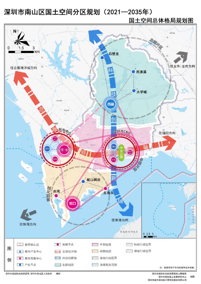 其中,《深圳市南山区国土空间分区规划(2021—2035年)》明确,南山区城区职能定位为深圳市的科技创新、商务金融、高等教育中心,国际航运枢纽,总部经济、文化创意产业的集聚区,都市休闲旅游基地。